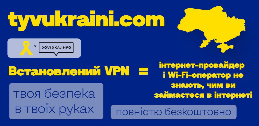 «Жовта Стрічка» закликає поділитися цією інформацією із родичами та друзями на окупованих територіях. Отримати безкоштовний VPN можна швидко тут: tyvukraini.com
