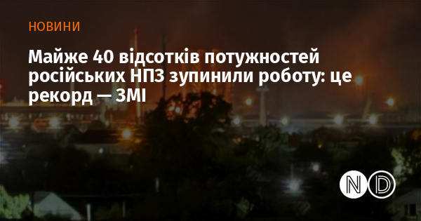 Станом на 28 вересня на нафтопереробних заводах (НПЗ) по всій Росії простоювали 38% потужностей первинної переробки нафти, або 338 тисяч тонн на добу. Про це повідомляє видання РБК з посиланням на дані агентства кількісної інформації «Сіала».