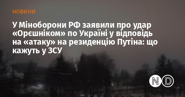 У Міноборони РФ заявили про удар «Орєшніком» по Україні у відповідь на «атаку» на резиденцію Путіна: що кажуть у ЗСУ