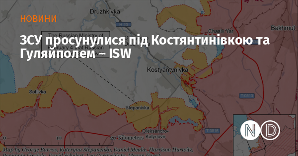 Українська армія нещодавно просунулася на Костянтинівському напрямку. Про це повідомили в американському Інституті вивчення війни.