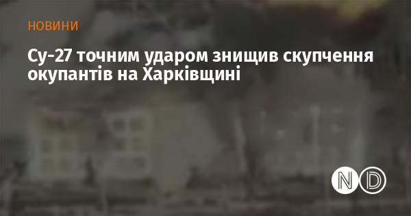 Літак Су-27 Повітряних Сил ЗСУ завдав точного авіаудару однією керованою бомбою GBU-62 по скупченню ворожої піхоти на Харківщині. Відео удару опублікували бійці у блозі «Соняшник».