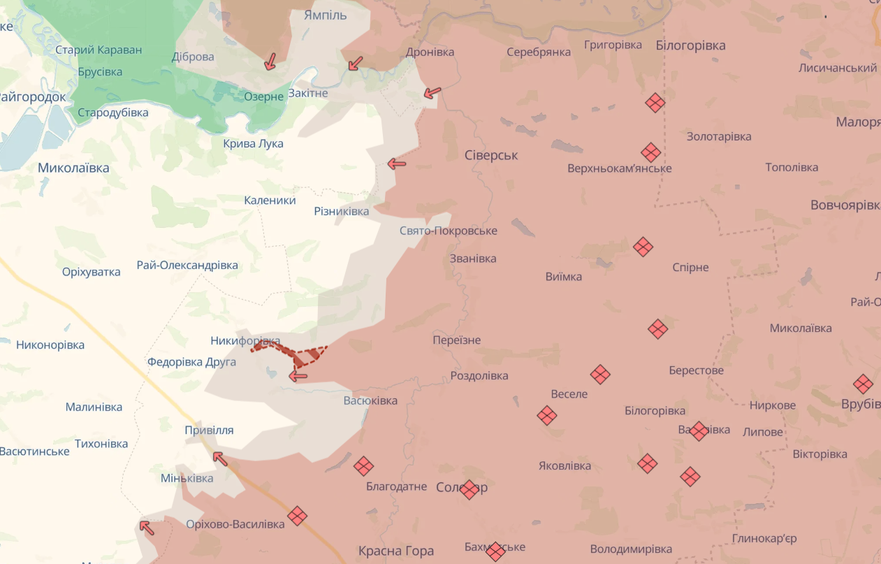 Загарбники також просунулися біля сіл Грабовське на Сумщині та Никифорівка на Донеччині.