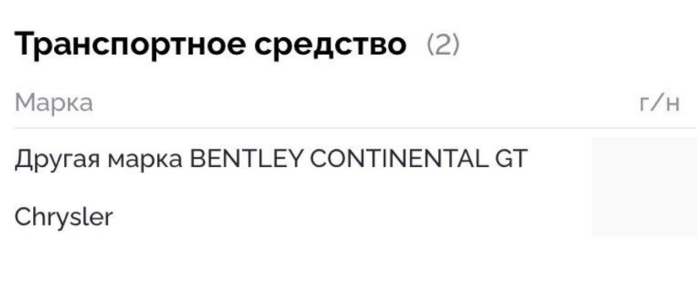 Кроме того, в его собственности зафиксированы автомобили Chrysler 300C и Bentley Continental GT.