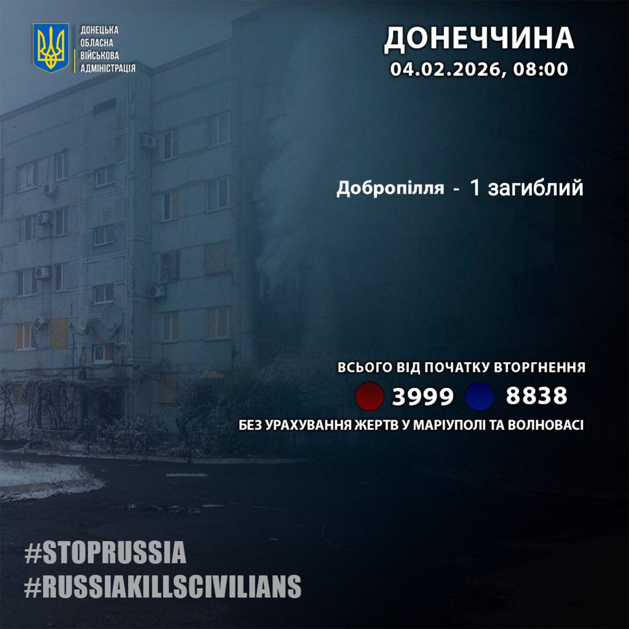 За 3 февраля россияне убили одного жителя Донецкой области. Об этом сообщил глава Донецкой областной военной администрации Вадим Филашкин.