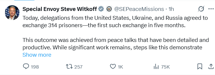 По словам американского дипломата, достигнутые договоренности демонстрируют эффективность дипломатических усилий, направленных на ускорение шагов по завершению войны в Украине. Он также подчеркнул, что обмен пленными рассматривается как один из практических результатов текущих переговоров.