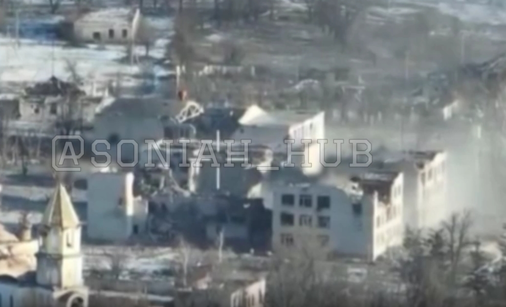 На кадрах видно, как бомба поражает трехэтажное здание, где находились российские оккупанты. Удар был нанесен в селе Петропавловка.