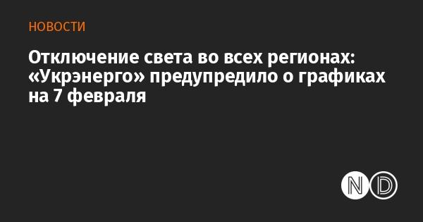 В субботу, 7 февраля, графики почасовых отключений электроэнергии будут действовать во всех областях Украины. Об этом сообщили в пресс-службе «Укрэнерго».